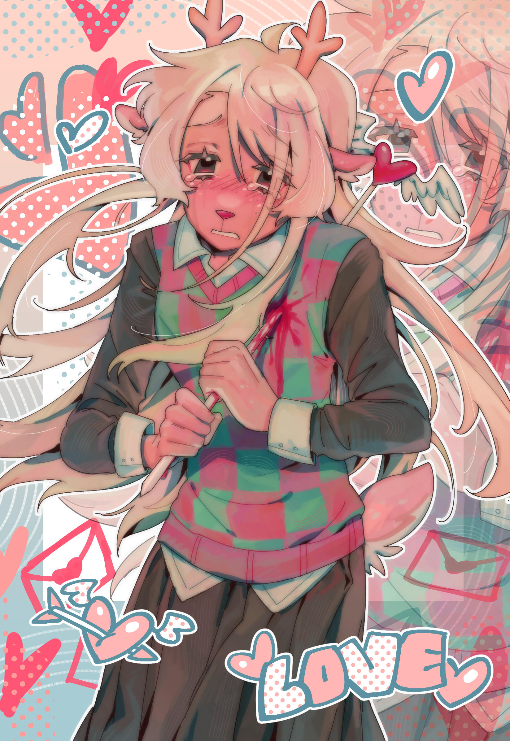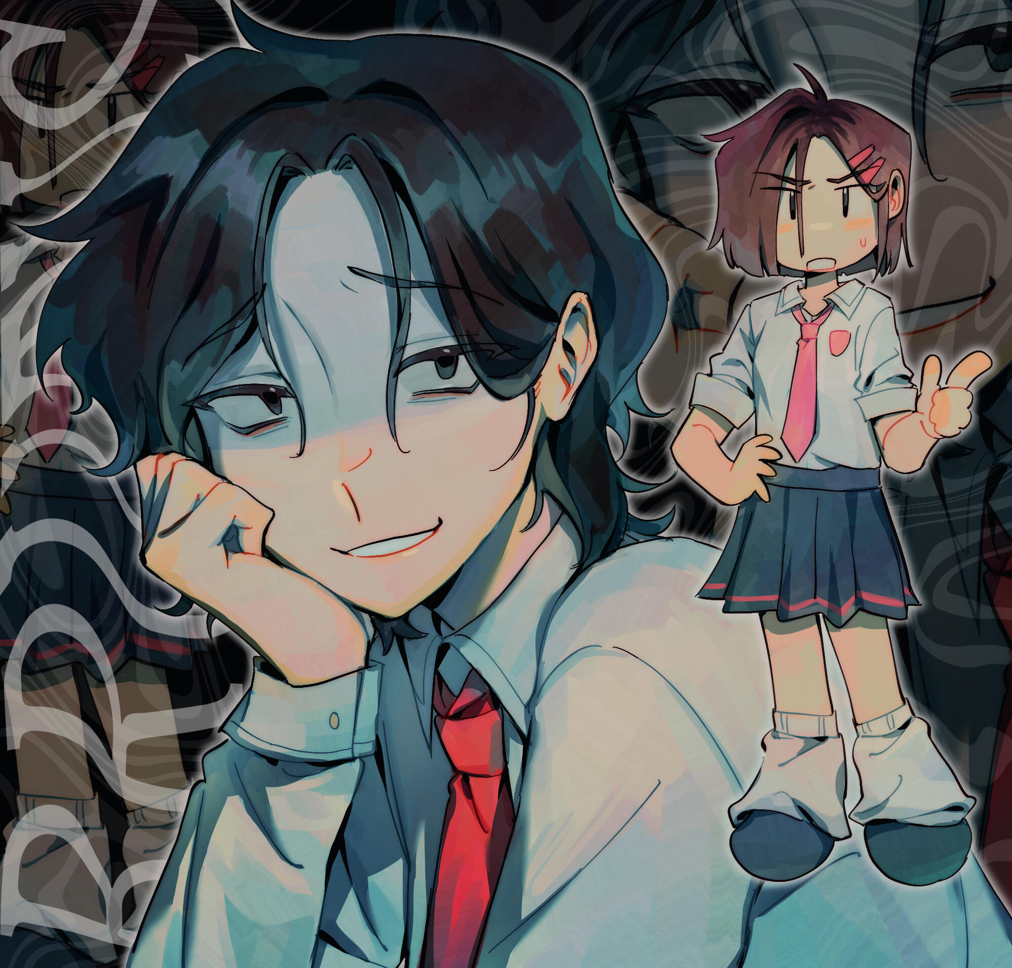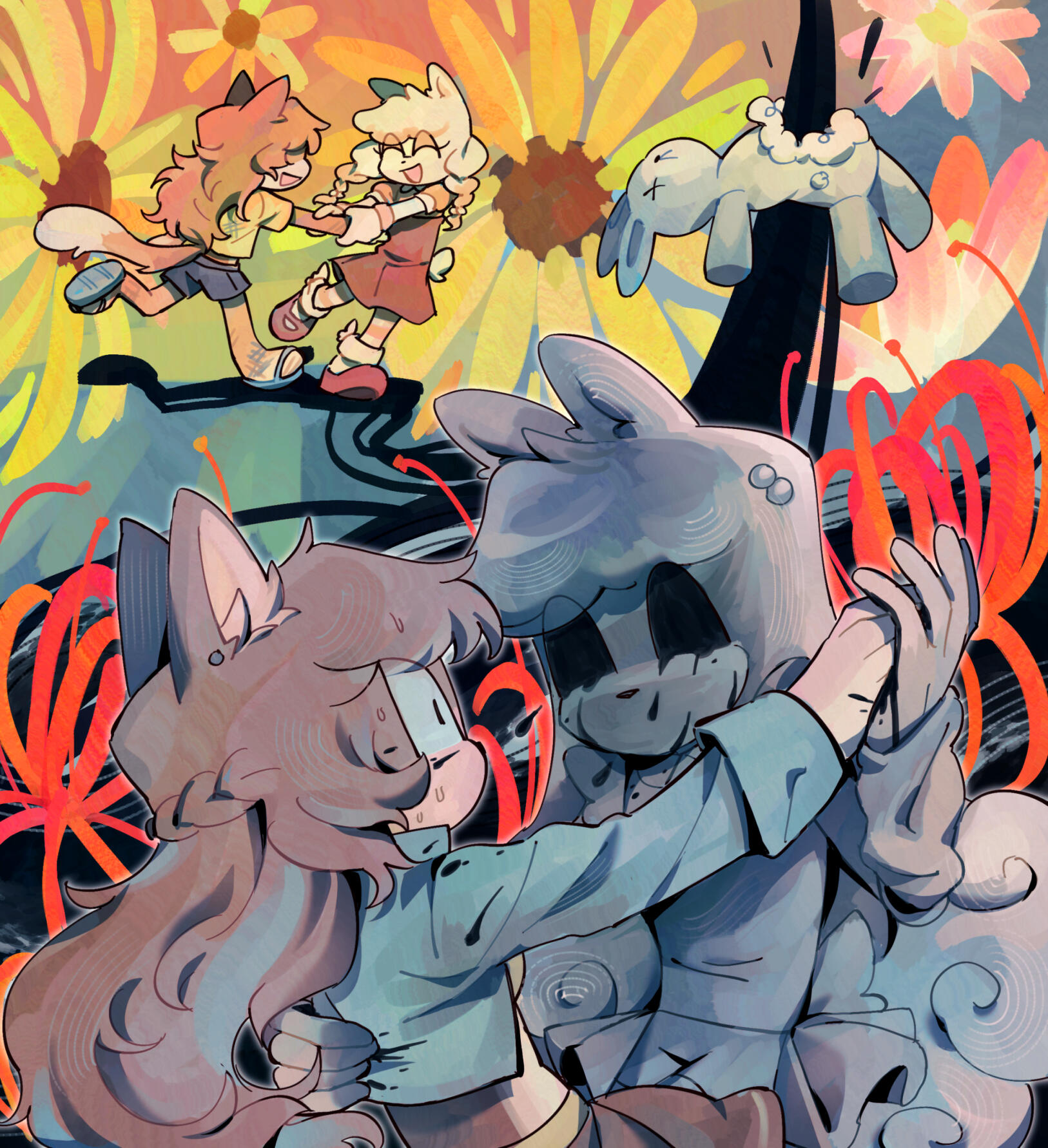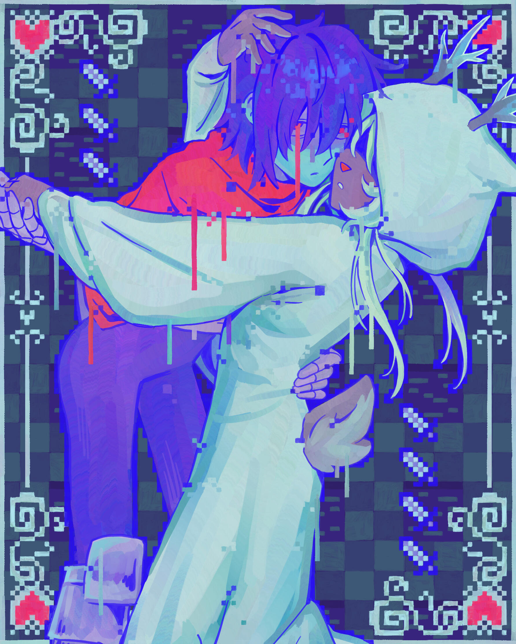 I'm Goomy! I'm a 22 year old illustrator and graphic designer.I attended university for design and graduated in 2024. While I do have an in-person job as a designer & illustrator, I am always open to professional work and inquiries.In my free time I do some traditional painting and play my same rotation of 3 video games. I draw a lot of fanart, usually of the same two characters over and over.I like UTDR, Vocaloid, Splatoon, Ghost Trick, various 90s anime...